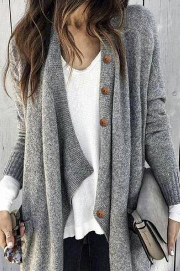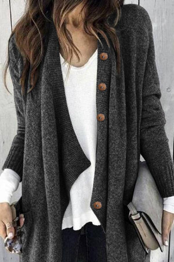 Paneled Solid Buttoned Casual Knitted Cardigans