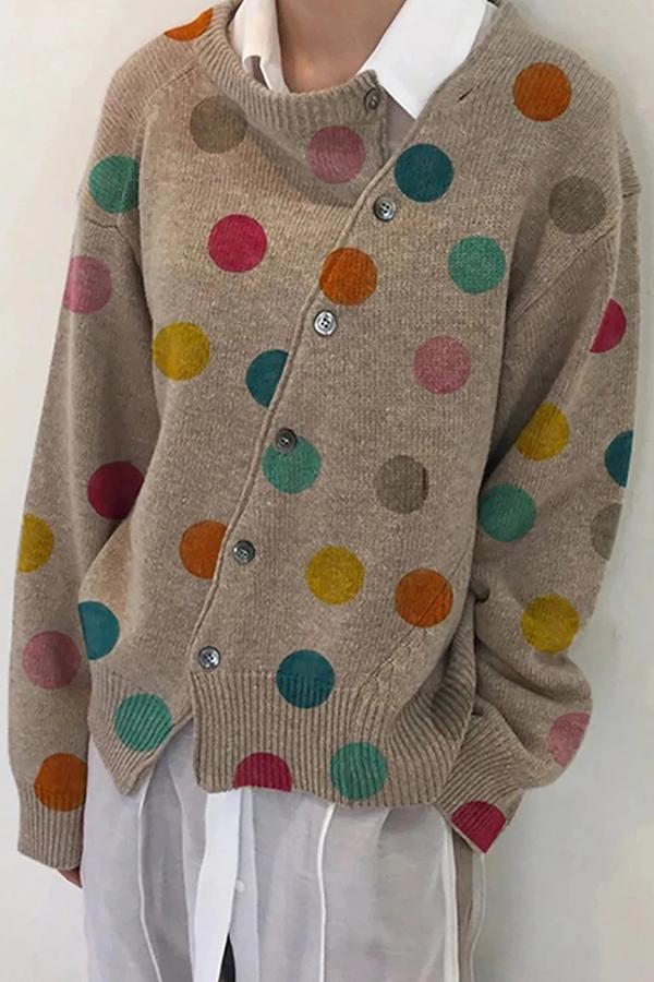 Asymmetric Single Breasted Polka Dot Cardigans